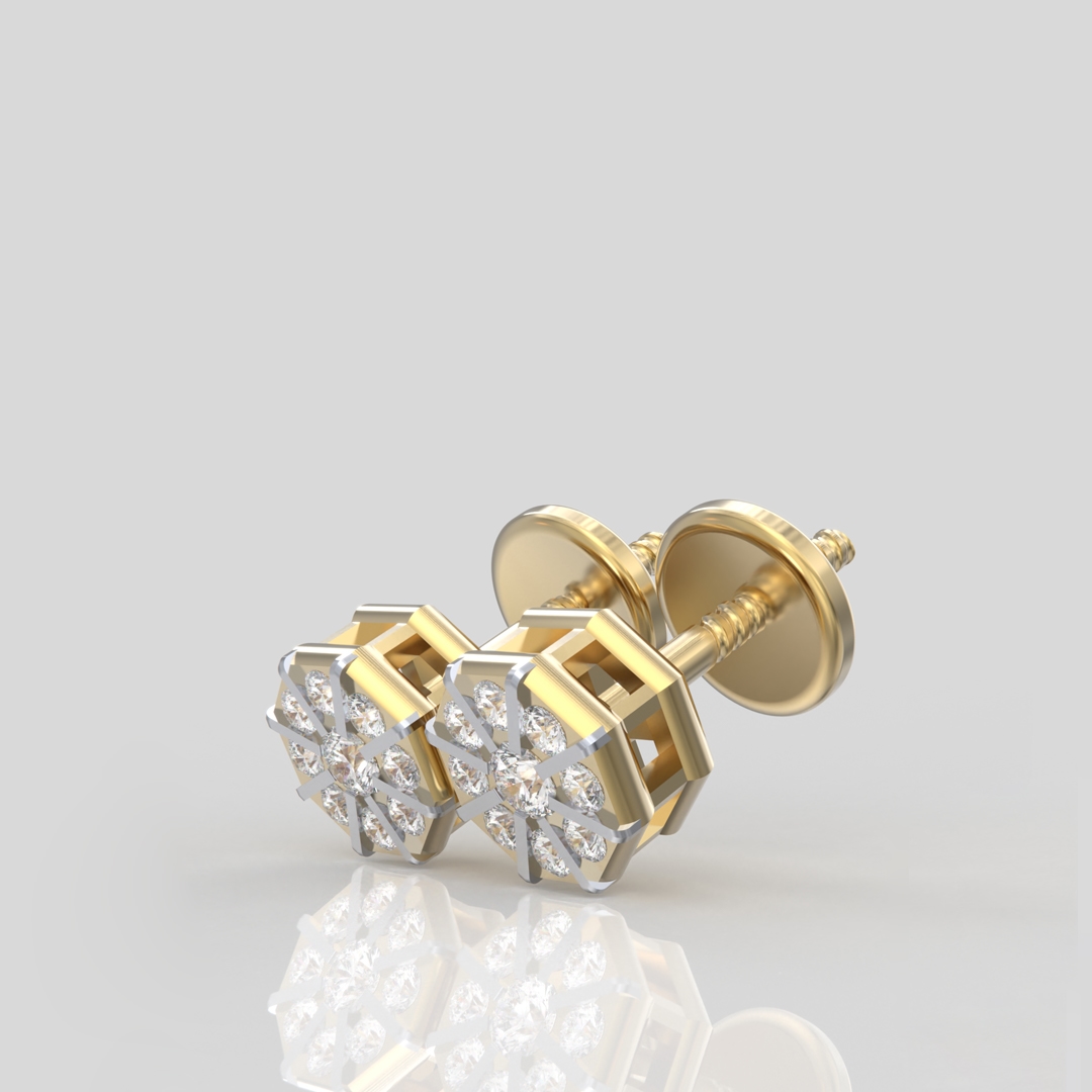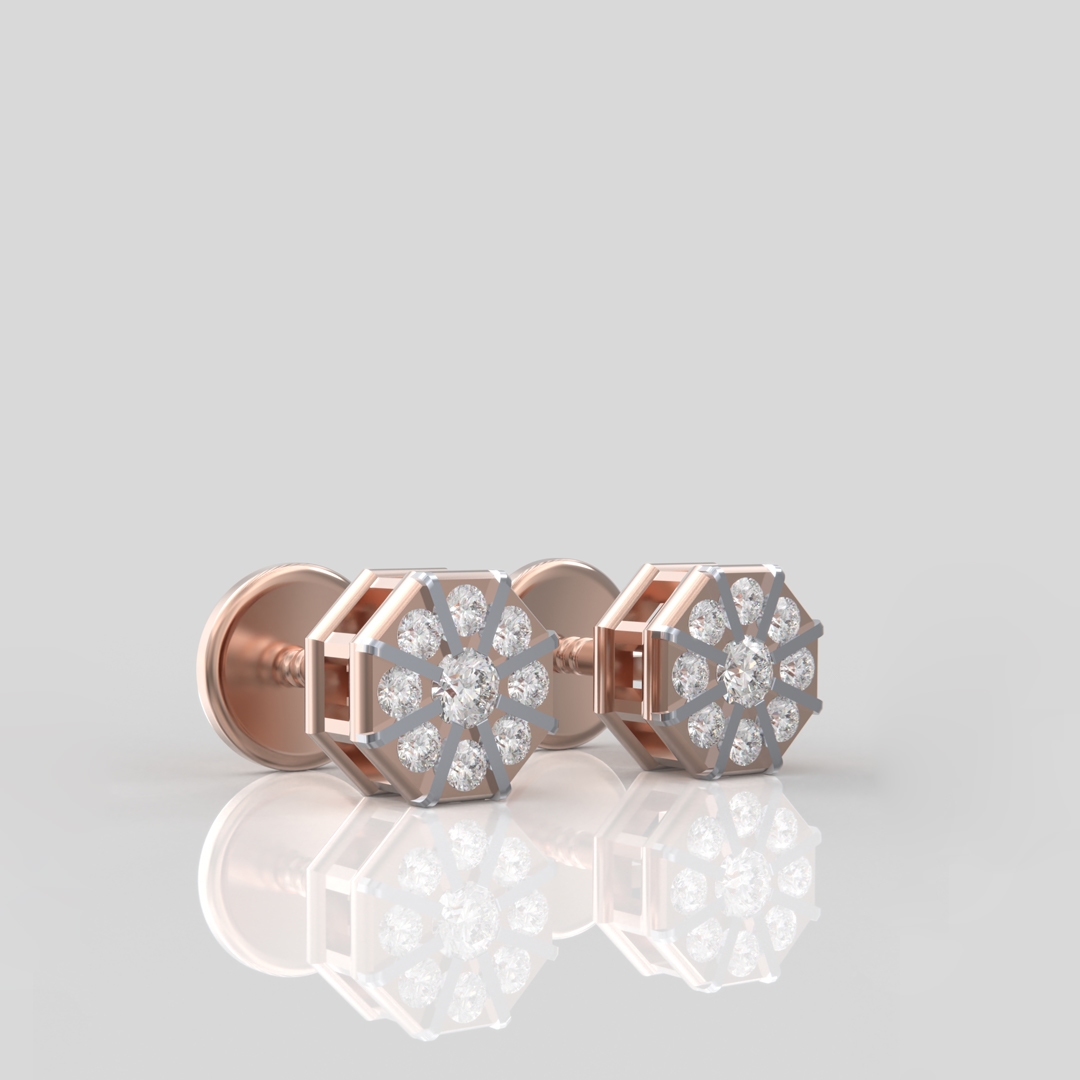 Introducing ninebe, an exquisite pair of octagon-shaped designer studs that redefine elegance. Crafted with a focus on sophistication, these earrings highlight a delicate yet innovative setting, making them a remarkable addition to any jewelry collection.